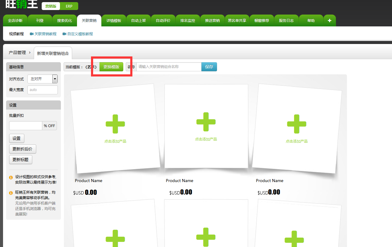 关联营销是旺销王的特色模块之一,我们提供了大量的系统模板并且支持自定义设置关联模板。这里介绍下关联模板的使用方法。