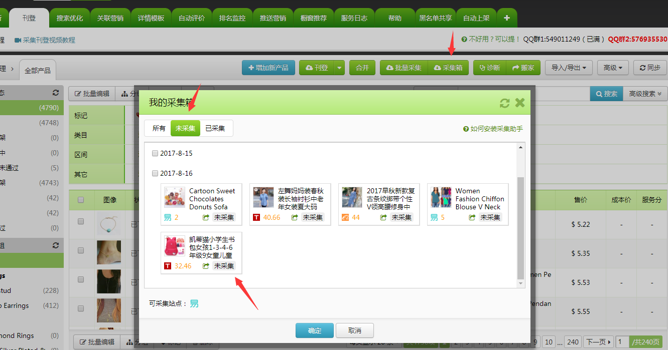 鼠标右键点击页面空白处便显示添加到采集箱按钮,点击添加