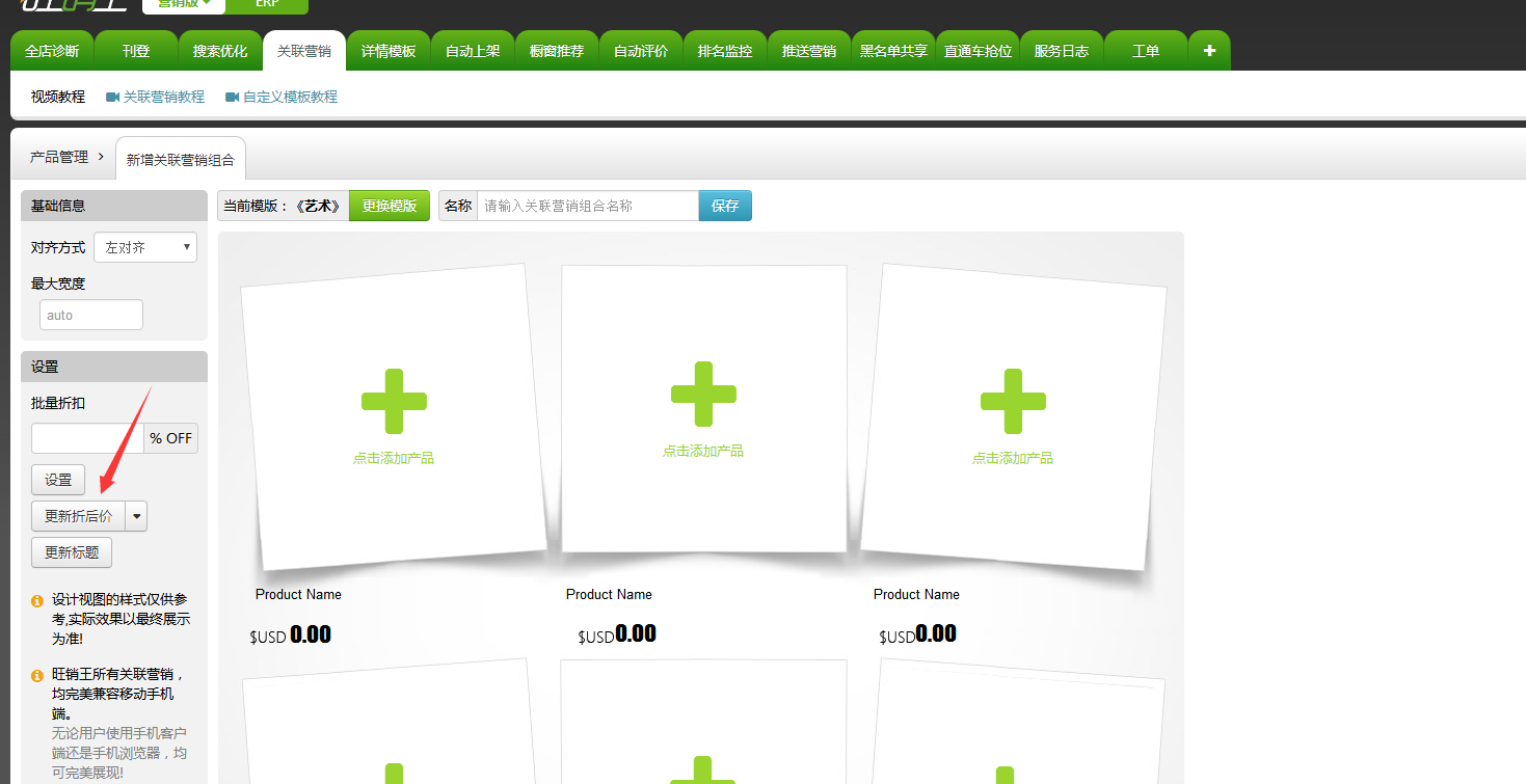 已创建好的关联营销需要更新折后价可在关联营销列表里直接更新